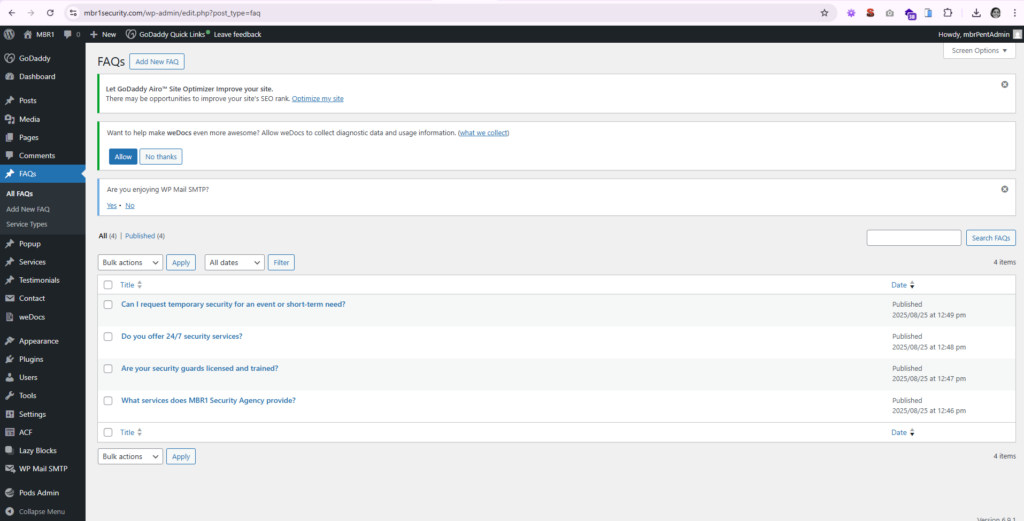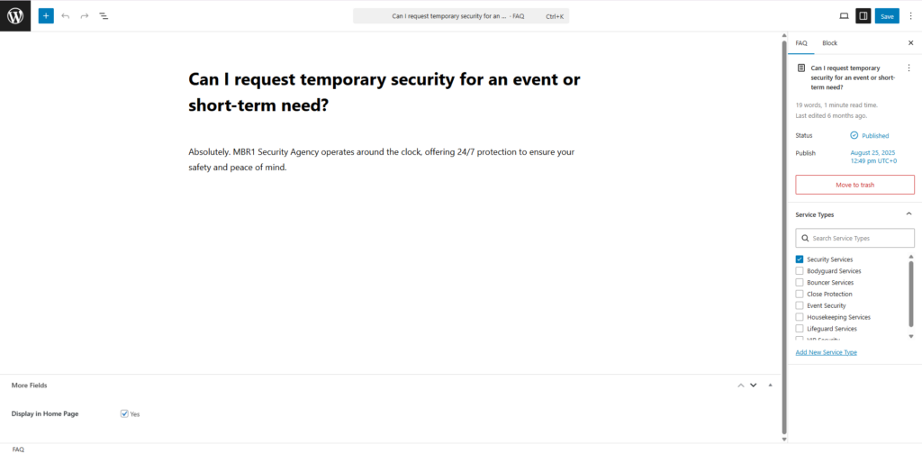 The FAQs shown on the home page and the FAQs related to each service type are selected in the FAQ section shown below